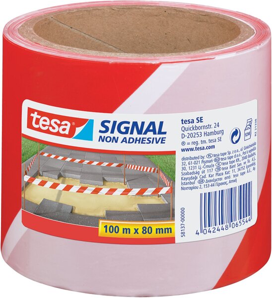 Produktinformationen "Absperrband tesa Signal 100 m x 80 mm nicht klebend rotweiß beidseitig bedruckt"