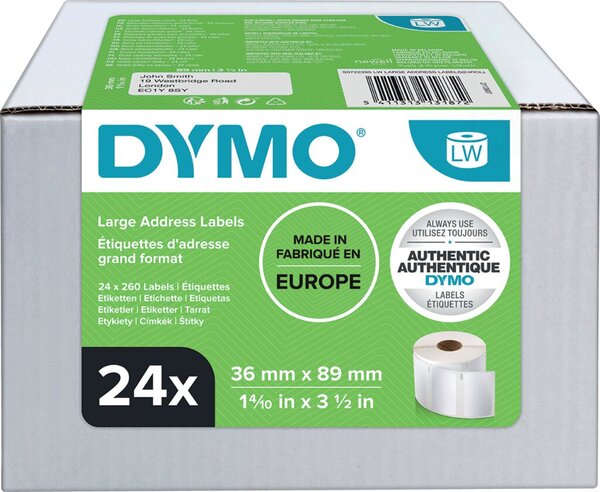 Großmengen-Pack Label-Writer Adressetiketten 36 x 89mm, weiß Packung = 24 Rollen DYMO 13187