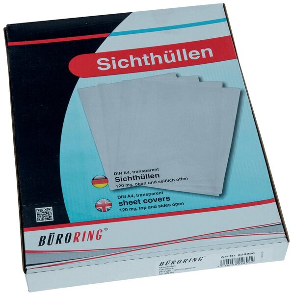 Büroring Aktenhüllen/Sichthüllen genarbt, transparent, Sichthülle VE = 1 Packung = 100 Hüllen 120my, PP-Folie