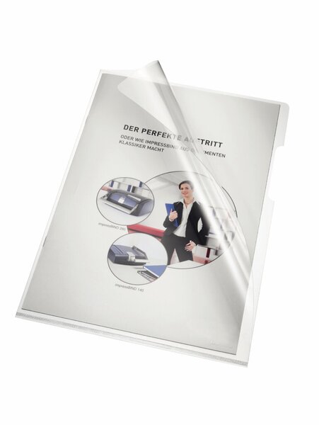 Produktinformationen "Aktenhülle DIN A4 farblos PVC-Folie 150 my Oberfläche glatt glasklar Greifausstanzung 100 Hüllen"