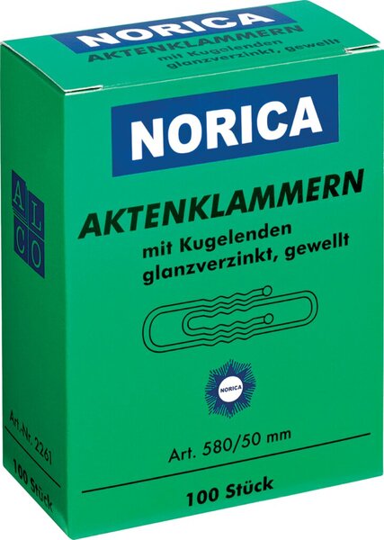 Produktinformationen "Aktenklammer Norica 50 mm gewellt Kugelenden verzinkt 100 Stück"