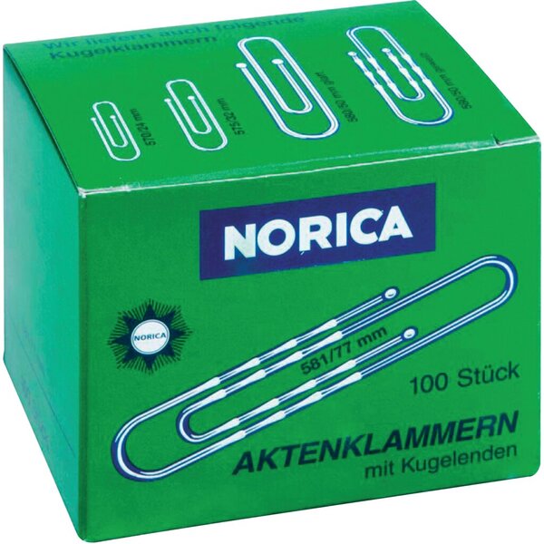 Produktinformationen "Aktenklammer Norica 77 mm gewellt Kugelenden verzinkt 100 Stück"