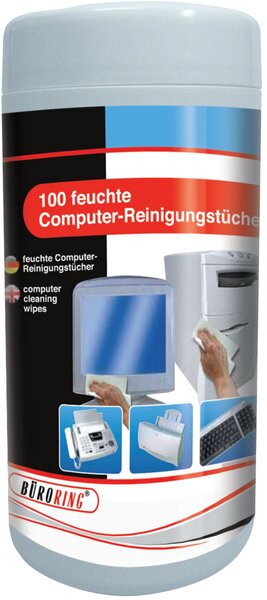 Feuchte Allzweck-Reinigungstücher nicht brennbar, mit Alkohol < 1% 1 Dose = 100 Tücher Zur Reinigung von PC Gehäusen, Bürogeräten & Tastaturen Vlies Format 13x16cm