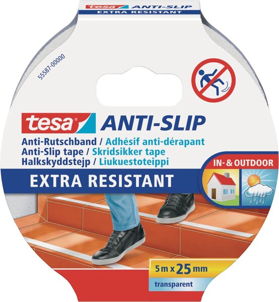 Anti-Rutschband transparent 5m:25mm, für innen und außen Reinigungsmittel-/Temperaturbeständig