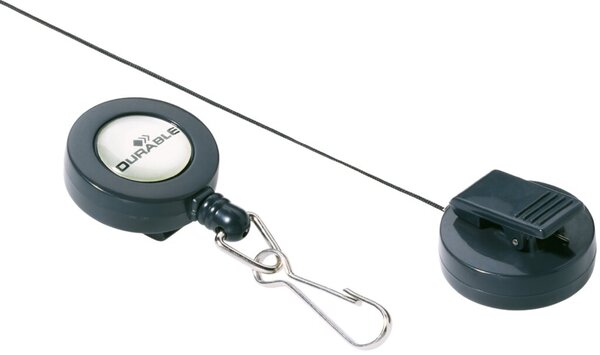Produktinformationen "Ausweishalter für Namensschilder mit Rückholmechanismus Länge 60 cm Karabinerhacken 10 Stück anthrazit"