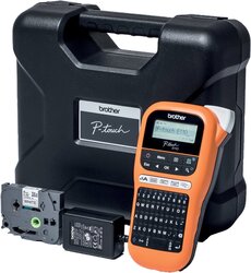 Beschriftungsgerät P-Touch E110 im Transportkoffer inkl. Netzadapter und Schriftbandkassette orangeschwarz