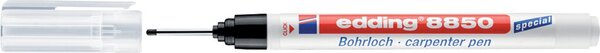 Bohrloch carpenter pen 8850, schwarz Marker mit sehr langem, schmalem Mundstück mit transparenter Kappe. Permanente Spezialtusche. Farbe schwarz. Strichbreite: ca. 0,7 - 1mm. Zum Markieren an schwer zugänglichen Stellen, wie z.B. zum Kennzeichnen von Bohrlöchern.