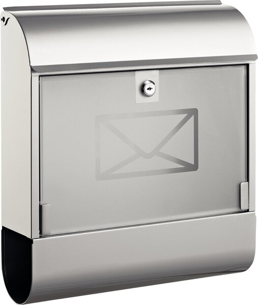 Briefkasten mit Zeitungsbox Stahl, lackiert siber, Maße:36x41x11,5 cm Glastür, Schloss mit 2 Schlüsseln. Inkl. Befestigungsmaterial