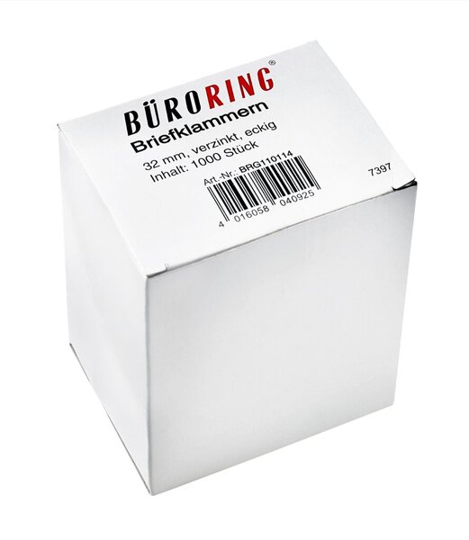 Büroring Briefklammern 32mm/1000 verzinkt spitz-eckig VE = 1 Schachtel = 1000 Stück