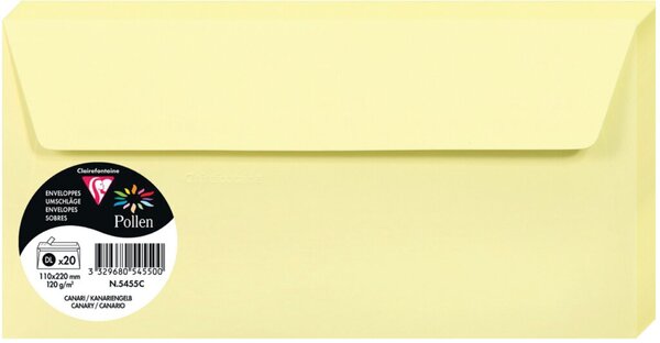 Briefumschlag Pollen DIN lang ohne Fenster haftklebend kanariengelb 120gqm 20 Stück