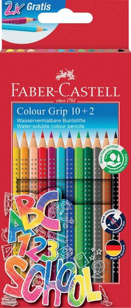 Buntstift COLOUR GRIP Minenstärke 33 mm Härtegrad weich Schaftform Dreikant wasservermalbar 12 Stück Kartonetui sortiert