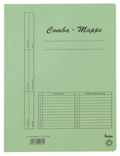 Produktinformationen "Comba-Mappe DIN A4 250gqm mit Heftmechanik grün"