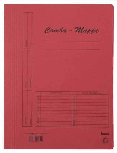Produktinformationen "Comba-Mappe DIN A4 250gqm mit Heftmechanik rot"