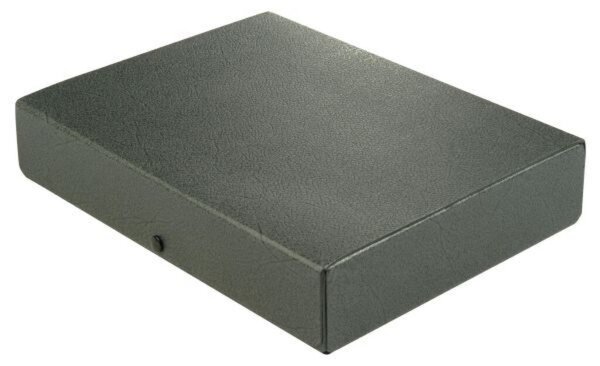 Dokumentenmappe aus 14 mm starker Pappe mit Druckverschluß Maße 245 x 318 x 65 mm B x T x H schwarz