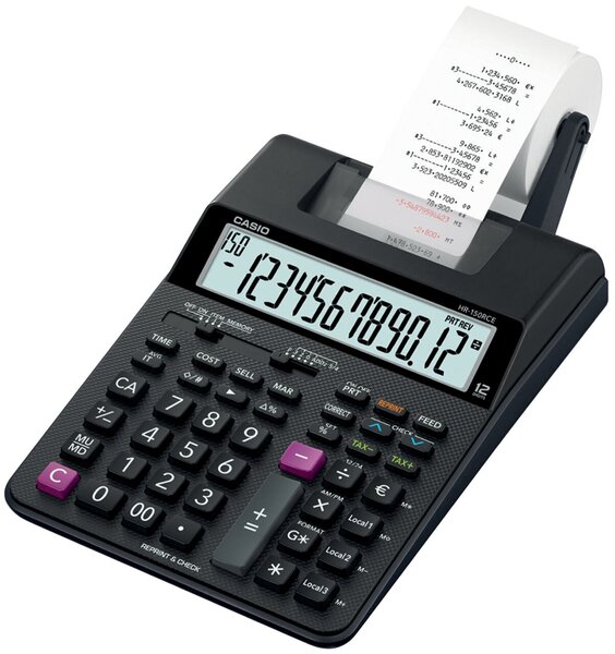 Druckender Tischrechner HR150RCE 12-stelliges LC-Display Batteriebetrieb 1655 x 67 x 285 mm B x H x T schwarz