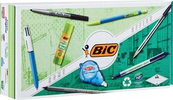 ECO Home Office Box Inhalt:1 schw. BIC Cristal Original VE = 1 Box = 9 teilig Tintenroller,1 blauer BIC Clic Stic Kugelschreiber+ 1 BIC 4-Farb-Kugel- schreiber mit schwarzer,blauer,roter, grüner Tinte,1 schwarzer Evolution 2,3 mm HB Graphitstift+1 BIC Matic ECOlutions 0,7 mm Druckbleistift, 1 schwa.BIC Marking Fine ECOlutions 4,2 mm Permanent Marker, 1 Tipp-Ex EasyRefill ECOlutions Korrekturroller -Maus(Ersatzband enthalten), 1 BIC ECOlutions Klebestift (8 g) in wiederverwendbarer Box aus Pappe