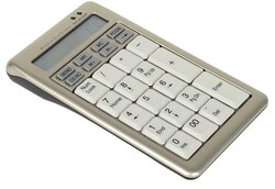 Externer Ziffernblock mit Taschen- rechnerfunktion für Tastatur 840, selbstaufrollendes USB-Kabel.