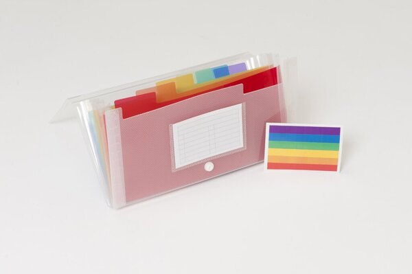 Fächermappe Crystal 7 Fächer 260 x 140 mm farbige Innenaufteilung farbige Taben transparent