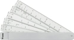 Fächermaßstab im Aluminium-Etui 5 Kunststoffstreifen # 724710 ca. 150mm lang, vernietet, Mehrfachbezifferung,22 Reduktionen mit Standard-,Architekten- und Metrischen Skalen. 1:2,5 1:5 1:10 1:20 1:25 1:30 1:33 1/3 1:40 1:50 1:75 1:100 1:125 1:150 1:200 1:250 1:300 1:400 1:500 1:750 1:1250 5:1