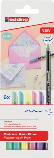 Produktinformationen "Fasermaler colour pen Strichstärke 1 mm 6 Stück pastell Kartonetui sortiert"
