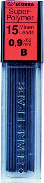 Ecobra Feinminen 0,9mm, B, schwarz passend für alle Druckbleistifte VE = 1 Dose = 15 Minen