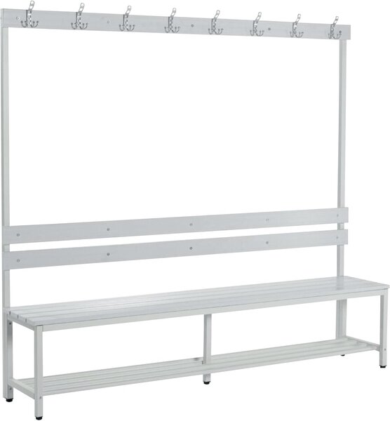 Sitz-und Garderobenbank, 1850x1500x395 mit Kunststoffleisten, Stahlgestell, (H x B x T) 1850 x 1500 x 395 mm, pulverbeschichtet Lichtgrau