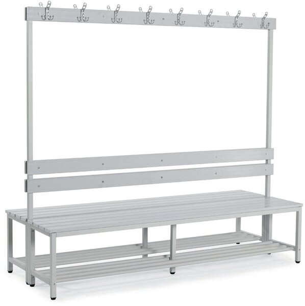Sitz- und Garderobenbank,1850x2000x760 mit Kunststoffleisten, Stahlgestell, (H x B x T) 1850 x 2000 x 760 mm, pulverbeschichtet Lichtgrau
