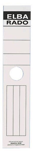 Selbstklebendes Ordner-Rückenschild f. Hängeordner Rado, breit,lang,weiß Beutel = 10 Stück grauer Logoaufdruck