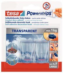 Powerstrip Deco-Haken transparent, large, sicherer halt bis 1 kg. VE = 1 Pack = 2 Haken + 4 Strips