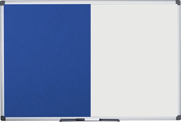 Kombitafel Filz/magn. 120x90cm blau glatte blaue Filzoberfläche magnetisch, trocken abwischbare Tafel eloxierter Aluminiumrahmen, inklusive Wandmontageset Made in EU / Hergestellt in Europa