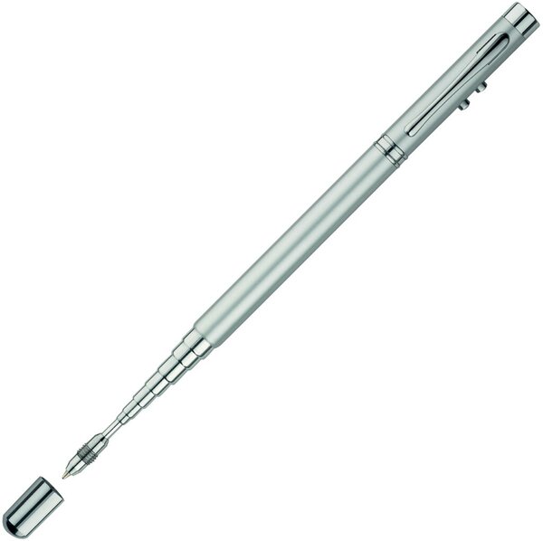 Teleskop-Laserpointer 4 in 1 Reichweite ca.100m, Silber # 780820 - Laserpointer - Teleskop-Zeigestab bis 56cm - Kugelschreiber, schwarz schreibend - LED-Licht, weiß Clip. Lieferung im Etui inkl. 3 Knopfzellen (G3-A CNB)