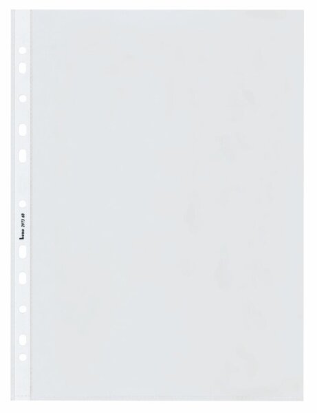 Produktinformationen "Lochrandhülle DIN A4 farblos PP-Folie 60 my Oberfläche glatt glasklar oben offen 230 x 302 mm 100 Hüllen"