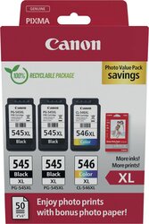 Multipack PG-545XLX2 / CL-546XL Photo 2x PG-545XL schwarz, 1x CL-546XL color 10x15 cm Photo Paper (GP-501 50 Blatt) für Pixma iP2850, MG2450, TR4550, 15ml x 2 + 13ml