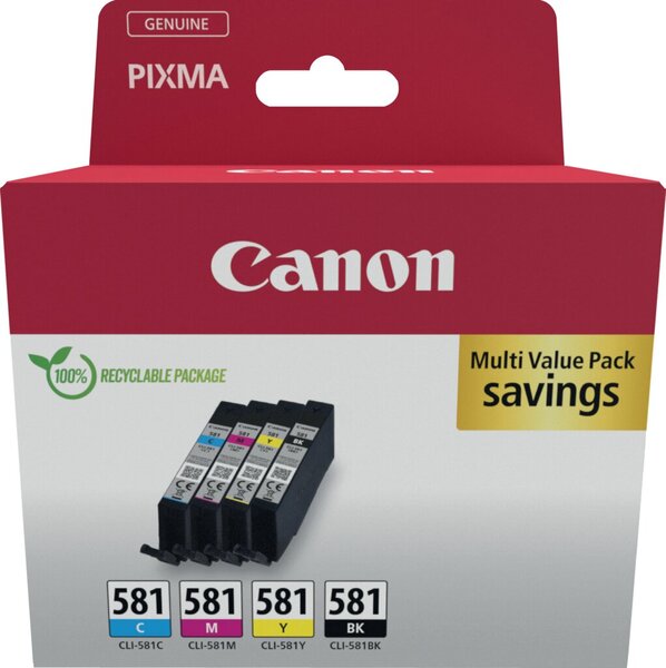 Multipack CLI581 CMYK für PIXMA TR7550, TR8550, TS6150, VE = 1 Pack = 4 Patronen TS6151, TS8150, TS8151, TS8152, TS9150, TS9155