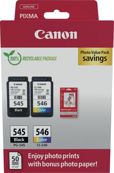 Multipack PG-545/CL-546 für PIXMA MG2250, MG2450, MG2550 1 VE = 1 Packung á 2 Tintenpatroen 1x farbig, 1x schwarz