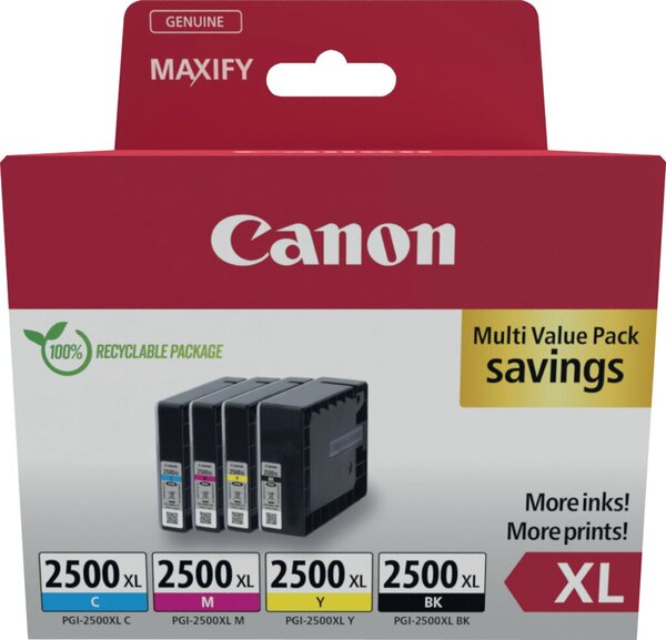 Produktinformationen "Multipack Tintenpatrone PGI-2500XL für Canon Drucker 1 x 709 ml 3 x 193 ml BKCMY"