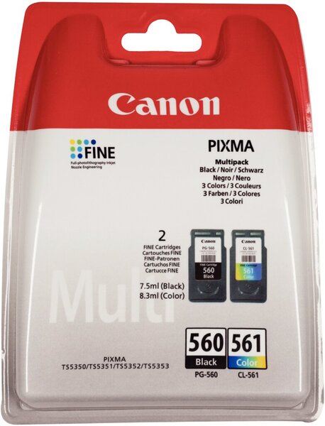 Multipack PGI-560/CL561 PGBK/CMYK für PIXMA TS5350, TS5351, TS5352 VE = 1 Pack = 2 Patronen TS5353, Inhalt: 1x 7,5 ml BK, 1x 8,3 ml Color