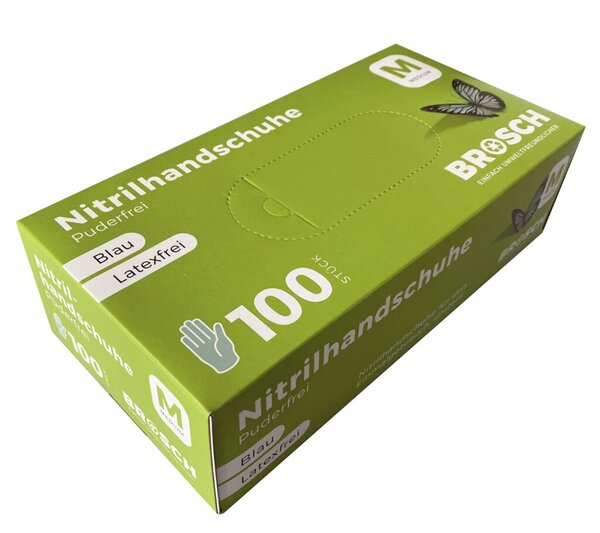 Nitril Einweghandschuh blau Größe M Acrylnitril-Butadien-Kautschuk puderfrei unsteril latexfrei mit Rollrand beidhändig passend allergenarm 100 Stück