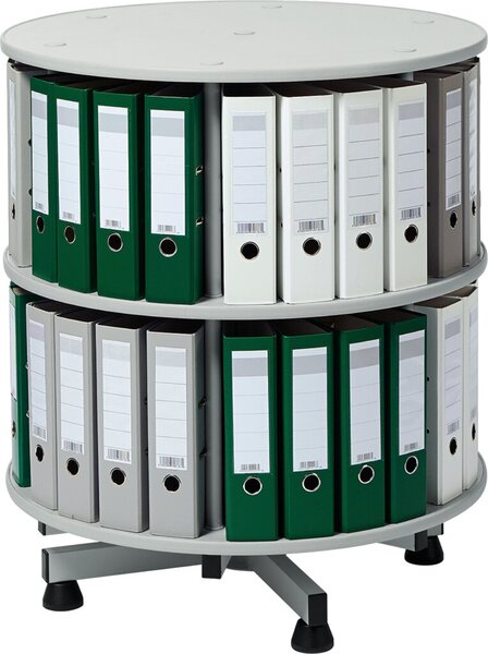 Ordner-Drehsäule 2 Etagen bis zu 48 Ordner, 800mm Ø x 930mm Höhe Stahl-Drehkreuz, lakiert, lichtgrau