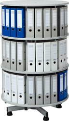 Ordner-Drehsäule 3 Etagen bis zu 72 Ordner, 800mm Ø x 1300mm Höhe Stahl-Drehkreuz, lakiert, lichtgrau