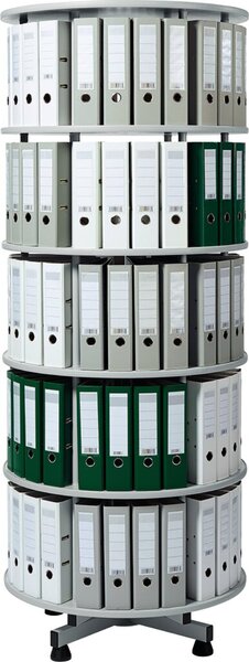 Ordner-Drehsäule 5 Etagen bis zu 120 Ordner, 800 mm x 2030mm Höhe Stahl-Drehkreuz, lakiert, lichtgrau