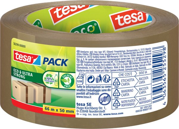 Produktinformationen "Packband tesapack Eco Ultra Strong ecoLogo 50 mm x 66 m braun stark klebend reißfest"