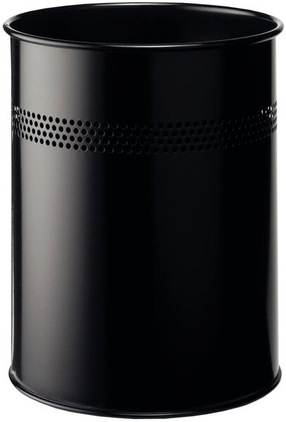 Metall Papierkorb rund, 14,7 Liter hoch schwarz, mit perforiertem Streifen Maße:315mm Durchm.260mm