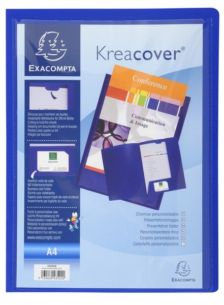 Produktinformationen "Präsentationsmappe Kreacover DIN A4 2 Klappen Füllhöhe 1 cm Außentasche PP-Folie 400 my blau"