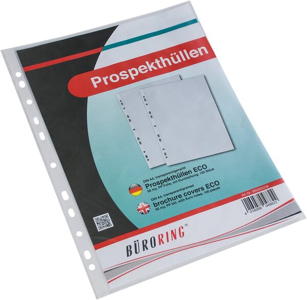 Prospekthülle DIN A4 ECO farblos PP-Folie 50 my Oberfläche genarbt oben offen Eurolochung 100 Hüllen