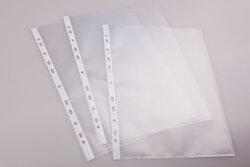 Prospekthülle DIN A4 farblos PP-Folie 110 my Oberfläche genarbt oben offen Eurolochung 50 Hüllen