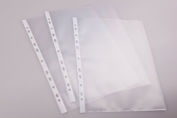 Produktinformationen "Prospekthülle DIN A4 farblos PP-Folie 110 my Oberfläche genarbt oben offen Eurolochung 50 Hüllen"