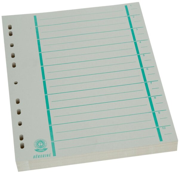 Büroring Trennblätter A4 grün chamois, farbiger Orgadruck VE = 1 Packung = 100 Stück 230g/qm RC Karton