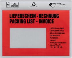Produktinformationen "UNIPACK Begleitpapiertasche C6 mit Druck LieferscheinRechnung Oberfolie LDPE 40 my 250 Stück"